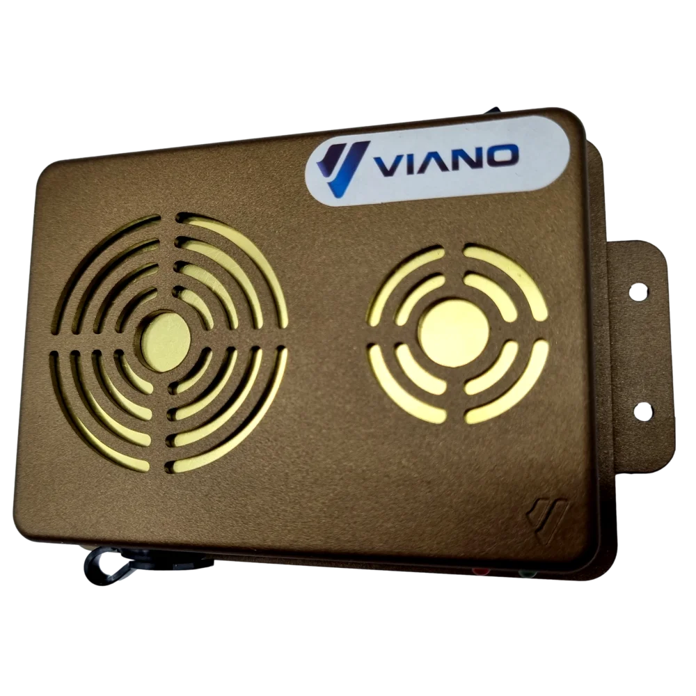 W urządzeniu wykorzystano mocne głośniki piezoelektryczne wykonane z mosiądzu, które dodatkowo zabezpieczone zostały maskownicami. Głośniki piezoelektryczne wykoane z mosiądzu charakteryzują się ogromną odpornością na czynniki panujące w komorze silnika takie jak niska, wysoka temperatura oraz wilgoć. Głośnik tego typu są również odporne na przypadkowe zachlapanie olejem czy innymi płynami eksploatacyjnymi. Stosowane w innych urządzeniach zwykłe czarne głośniki membranowe, konstrukcyjnie podatne są na uszkodzenia i mogą wywoływać zwarcia w instalacji. Dodatkowo brak maskownic w tego typu urządzeniach, naraża sprzęt na przypadkowe uszkodzenia mechaniczne, które mogą wystąpić w czasie prac serwisowych/naprawczych naszego samochodu.